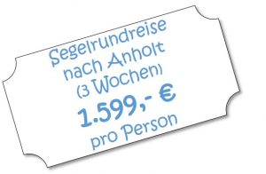 Der 3 wöchige Törn inkl. Skipper kostet pro Person  nur 1.599,-€.   Minimum 2 Personen, maximal 4 Personen. Für Kinder unter 14 Jahren berechnen wir nur 990,- € und für Kinder unter 7 Jahren sogar nur 790,- €. Rechnen Sie zusätzlich noch mit Nebenkosten für die Verpflegung (inkl. des Skippers) und Liegeplatzgebühren sowie Spritgeld.