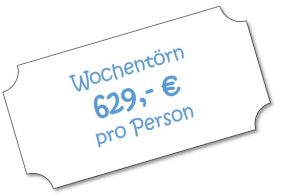 Bitte beachten Sie, dass wir Wochentörns erst ab einer Mindestteilnehmerzahl von 2 Personen anbieten können. Sollten Sie alleine sein, könnte ihre Buchungsanfrage mit einer anderen Anfrage zusammengelegt werden. Sollte auch das nicht gehen, kann eine Skipperpauschale von 450,- € pro Woche berechnet werden. Dazu werden wir Sie natürlich rechtzeitig informieren.